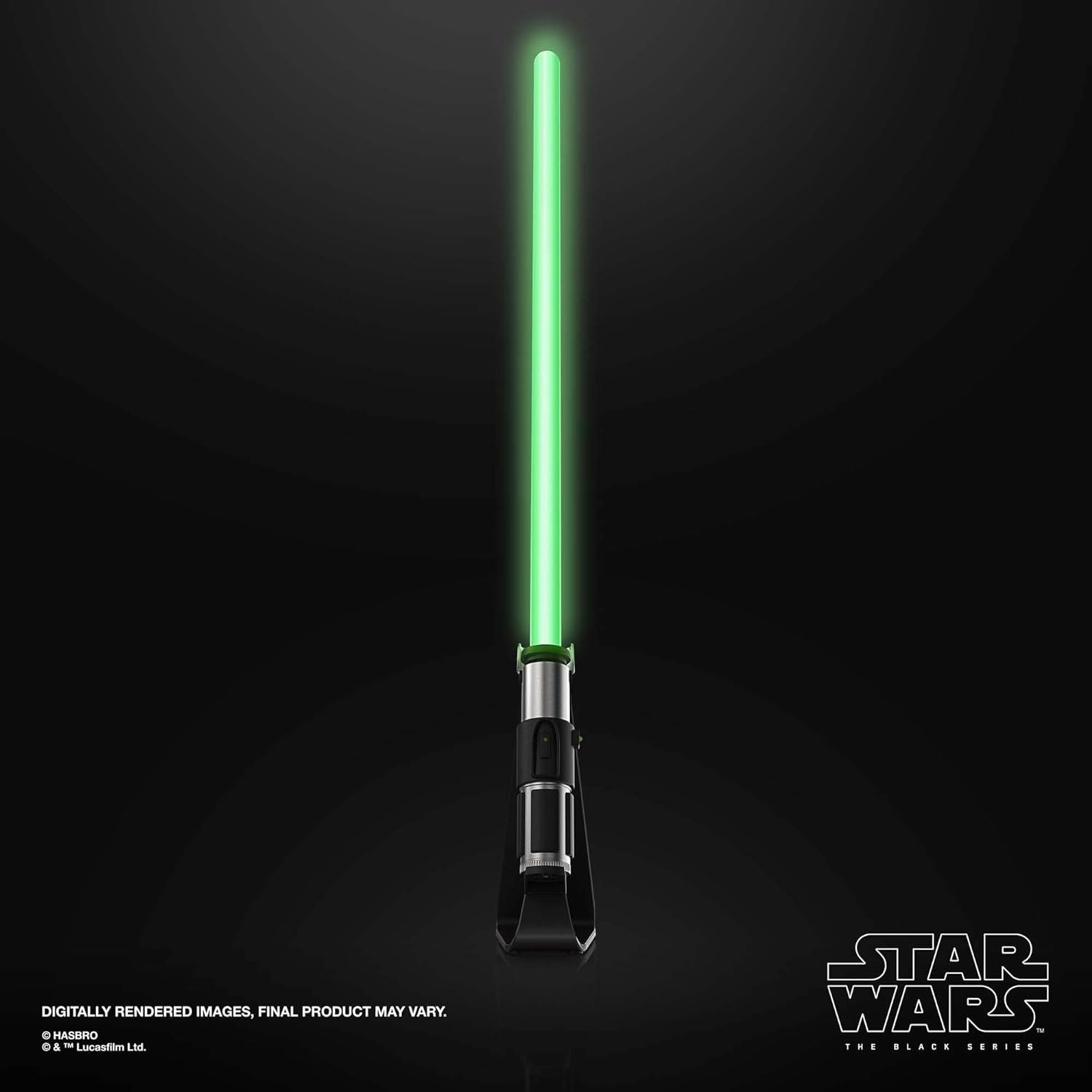 Reimagine iconic scenes from in the Star Wars saga -- and create your own -- with Black Series lightsaber and helmet roleplay items! This collectible Black Series Force FX lightsaber is detailed to look like the Yoda lightsaber from the Star Wars: The Book of Boba Fett live-action series on Disney+. (Additional products each sold separately. Subject to availability.) Includes: Lightsaber, removable kyber crystal, stand, and instructions. Combining advanced LEDs and entertainment-inspired sound effects, the Yoda Force FX Elite Lightsaber is the most realistic Force FX Lightsaber yet This roleplay item features design, deco, and scale based on Yoda’s signature lightsaber featured in Star Wars: The Book of Boba Fett Use the switch and button on the hilt to activate entertainment-inspired sound effects, progressive ignition, battle clash effect, wall-cutting effect, blaster deflect, duel effect, and battle sequence mode Proudly display this lightsaber on the included stand, with or without the removable blade, and show off the included removable kyber crystal This lightsaber includes a non-replaceable rechargeable battery Star Wars The Black Series roleplay items make impressive additions to any Star Wars collection. Look for other premium adult roleplay items such as electronic helmets (Sold separately. Subject to availability.) Ages 14 and up. WARNING: This toy produces flashes that may trigger epilepsy in sensitized individuals. Includes Non-Replaceable Rechargeable 3.7V 880mAH Li-Ion Battery. F8683