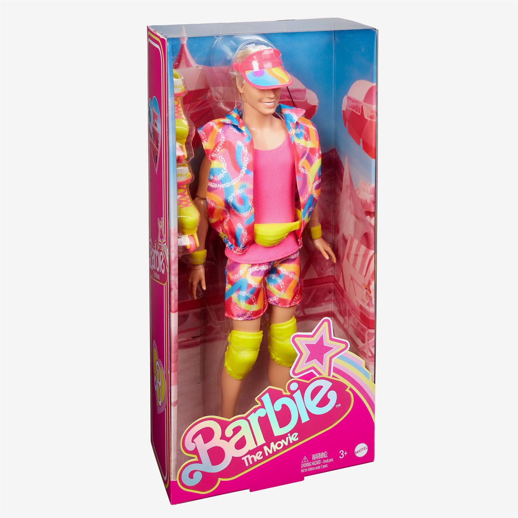 This collectible Ken doll is a skating machine in a retro-inspired outfit. He wears a hot pink tee and colorful matching accessory set complete with a visor, knee pads, and neon Impala inline skates. Inspired by Ken’s character in the feature film, he’s ready to roll alongside Barbie for a fun day in the sunshine. Eye-catching neon outfit and Impala skates recreate Ken’s movie outfit Rocking a sleeveless jacket worn over an electric pink tee Athletic shorts and matching visor feature a bright, throwback print Matching neon green wrist bands, knee pads, and a belt bag complete his look Posable doll comes in collectible Barbie The Movie packaging
