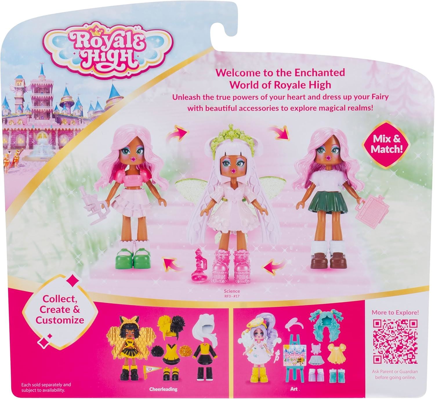 Royale High 3" School Spirit Fashion Pack – Science (Nature Fairy) + Virtual Item Code BRING THE MAGIC OF ROYALE HIGH TO LIFE! ✨ Level up your collection with the Royale High School Spirit Fashion Pack! Straight from the biggest fashion-based world in gaming, this Series 1 Science & Nature Fairy doll brings your favorite virtual classroom into the real world. Unbox 15+ mix-and-match accessories to style your fairy for the lab or the runway. The best part? The fairy wings detach and transform into a wearable ring for YOU—so you can match your doll in style! INCLUDES EXCLUSIVE VIRTUAL ITEM CODE: Score an exclusive "Genetic Hair" style for your in-game Roblox avatar! Redeem your code and dominate the halls of Royale High with a look nobody else has. Why You’ll Love It: Infinite Style: Includes 3 full outfits, 3 pairs of shoes, 2 wigs, and 3 science tools for endless customization. Wearable Magic: The doll's fairy wings become a real-life ring you can wear. Universal Fit: All fashions and accessories are interchangeable with other 3-inch Royale High dolls. Mix, match, and create your unique squad! Series 1 Collector's Item: Officially licensed by Jazwares—a must-have for every Royale High superfan. What’s in the Box: 1x 3-inch Nature Fairy Doll 15x Accessories (Outfits, Shoes, Wigs, Crown, Science Tools) 1x Wearable Wing Ring 1x Virtual Item Code (Redeemable on Roblox) Don’t wait for the bell to ring! Add the School Spirit Science Pack to your cart and unlock your magic today! ♀️